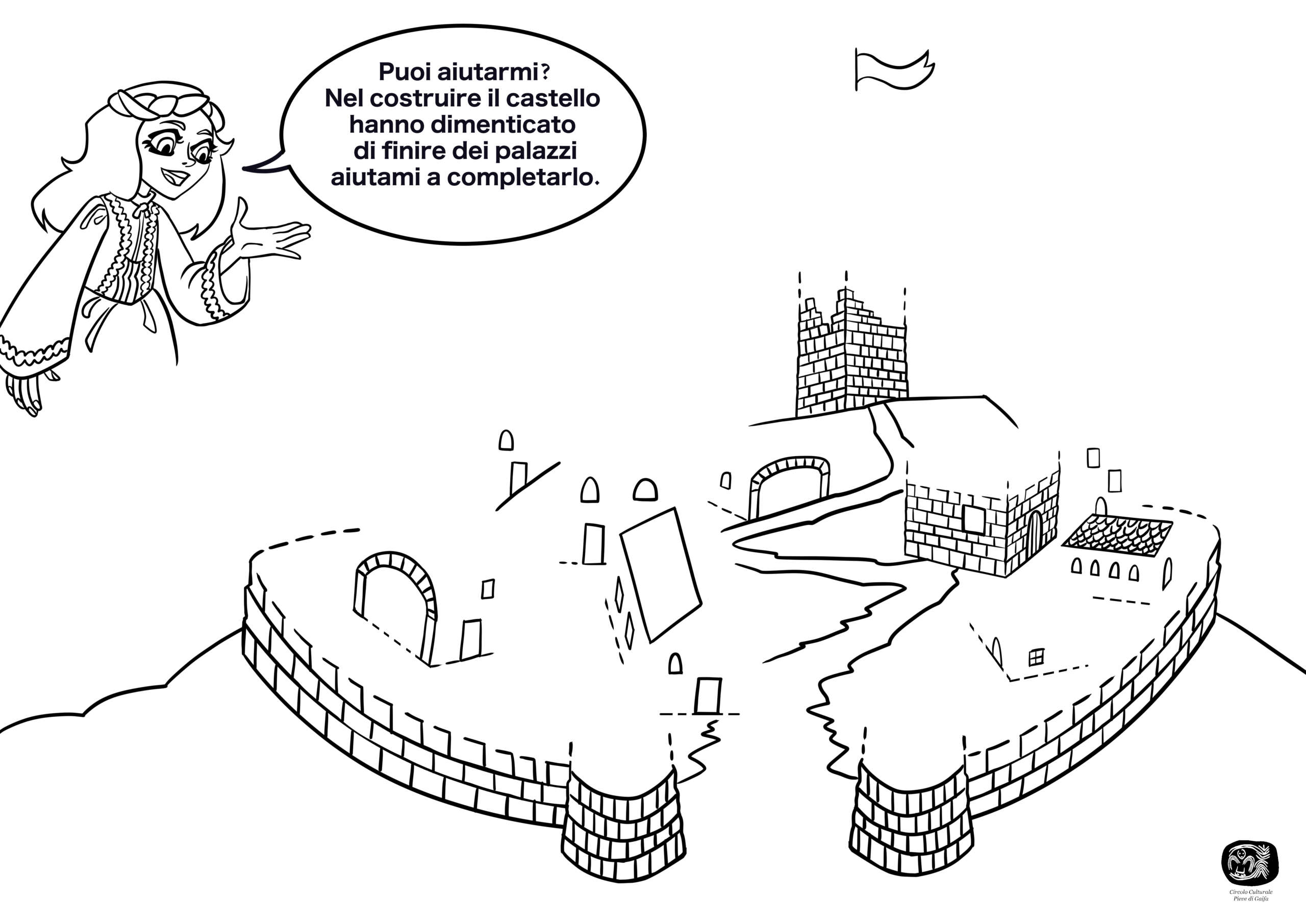 Prima di aprire i computer si è dato un compito (o missione utilizzando terminologia più consona) molto chiaro e semplice: ricostruire nel tempo a disposizione la torre, presente nel gioco approssimativamente nella sua forma attuale in rovina, e le mura poste ritracciate a terra ipoteticamente circondando la collina.