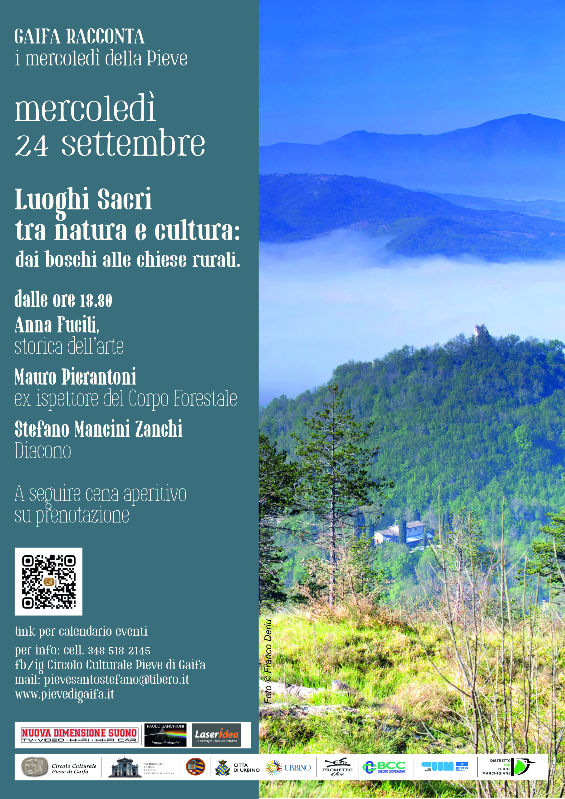 In questa occasione avremo ospiti la storica dell’arte Anna Fucili e l’ex-ispettore del Corpo Forestale Mauro Pierantoni accompagnati da una lettura del diacono dell’Arcidiocesi di Urbino Stefano Mancini. Al centro di questo evento del 24 settembre sarà la ricchezza storica, naturalistica e spirituale delle nostre zone attraverso gli interventi che ci parleranno delle Cesane e delle loro chiese rurali con l’accompagnamento del messaggio di San Francesco nel Cantico delle creature.